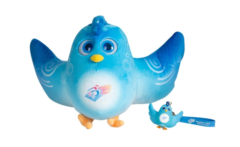 杭州亞帕運的吉祥物是一隻名為「飛飛」的鳥兒,其設計靈感源自良渚文化中象徵神聖與智慧的「神鳥」形象,融合了杭州深厚的歷史底蘊與現代科技創新精神。做為文化與幸福的使者,「飛飛」不僅包含著傳遞佳音的寓意,也象徵著人與自然和諧共生的美好願景。