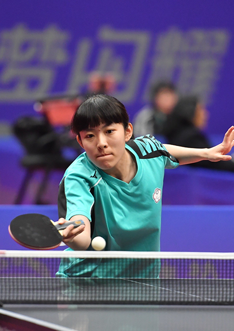 我國桌球女將林姿妤女子單打TT10級比賽照。
